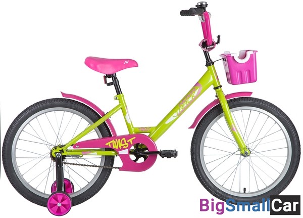 Велосипед NOVATRACK 20" TWIST зелёный, тормоз нож, крылья корот, корзина, защита А-тип